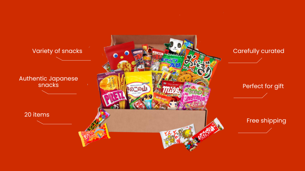 Discover the taste of Japan with our Japanese Treats Box! Packed with 20 authentic snacks, from savory crackers to sweet candies, it's the perfect indulgence. Order now and enjoy a delicious journey through Japanese flavors!